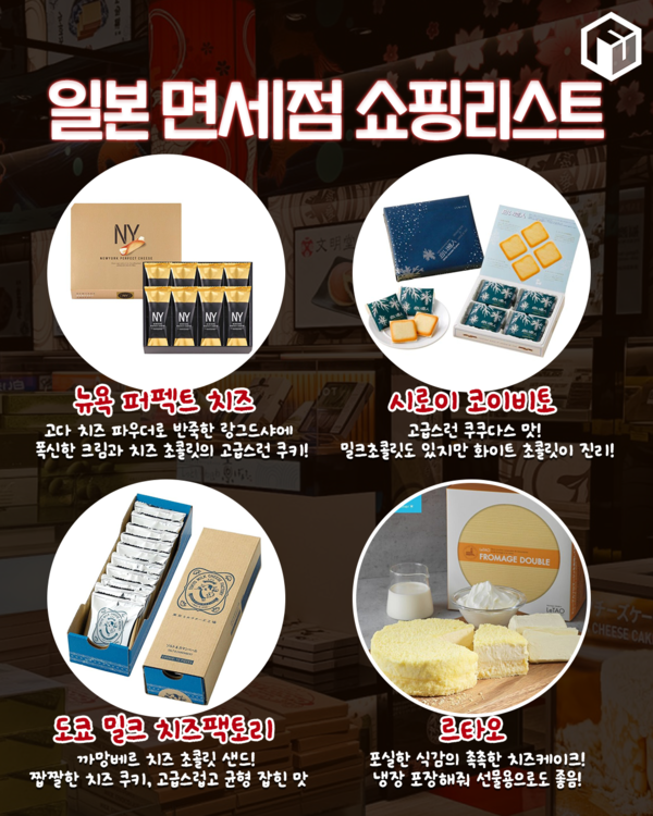 쿠키류 중에서 최근 인기 있는 일본 면세점 간식은 고다 치즈 파우더를 넣은 랑그드샤 사이에 치즈 초콜릿과 크림이 샌드된 ‘뉴욕 퍼펙트 치즈’가 고급진 풍미로 인기있습니다.