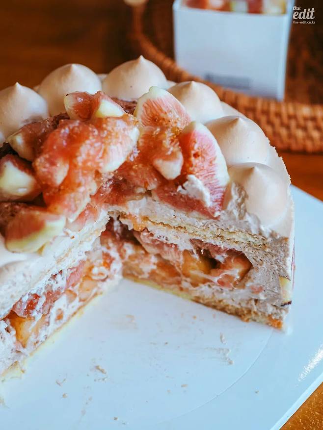 두세르는 분당에서 아주 유명한 케이크 가게다. 처음 방문했던 게 2019년쯤인데, 갈수록 인기를 더해 요즘은 오픈 한두 시간 전에 웨이팅을 하거나 예약에 성공해야만 먹을 수 있다. 그만큼 많은 이들에게 사랑받는 맛이라는 의미. 누군가 두세르 케이크를 선물해 준다면 나는 아마 그 자리에서 사랑 고백을 할지도. 특히 복숭아와 무화과가 함께 나오는 여름과 가을철의 ‘얼복무'(얼그레이 복숭아 무화과 케이크)를 좋아하는 사람들이 많다. 일단 넉넉하고 먹음직스러운 비주얼부터 사람 마음을 설레게 하고, 앉은 자리에서 계속해서 들어가는 맛이라 다 먹고 난 뒤에도 은은히 생각난다. ‘그때 그 케이크 맛있었는데~’ 하고 추억하기에 좋은 케이크.