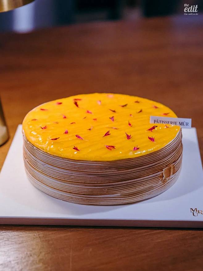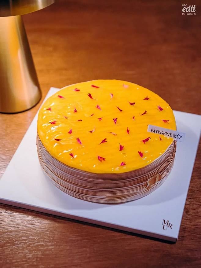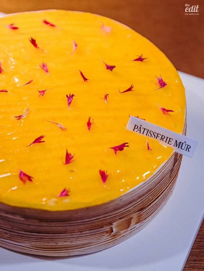 파티세리 뮤흐에선 클래식하면서도 최규성 셰프만의 섬세한 터치가 가미되어 있는 디저트를 만날 수 있는데, 그중에서도 홀 케이크로 주문 가능한 ‘오랑쥬리(Orangerie)’가 이름처럼 서정적이고 근사한 맛을 품고 있다. 구름처럼 부드러운 이탈리안 머랭, 망고 패션 시럽을 적신 비스퀴와 오렌지 블라썸 가나슈 몽떼, 오렌지 마멀레이드가 켜켜이 쌓여 한없이 일체화된 부드러움 속에서 오렌지꽃 향기가 은은히 입안에 퍼질 때의 행복감이 이루 형언할 수가 없다. 눈을 감으면 그야말로 오렌지 정원에 와 있는 듯한 기분. 특별한 날에 더없이 걸맞은 케이크를 서울 한복판에서 언제든 편히 만날 수 있다니 이만한 호사가 더 있을까 싶다.