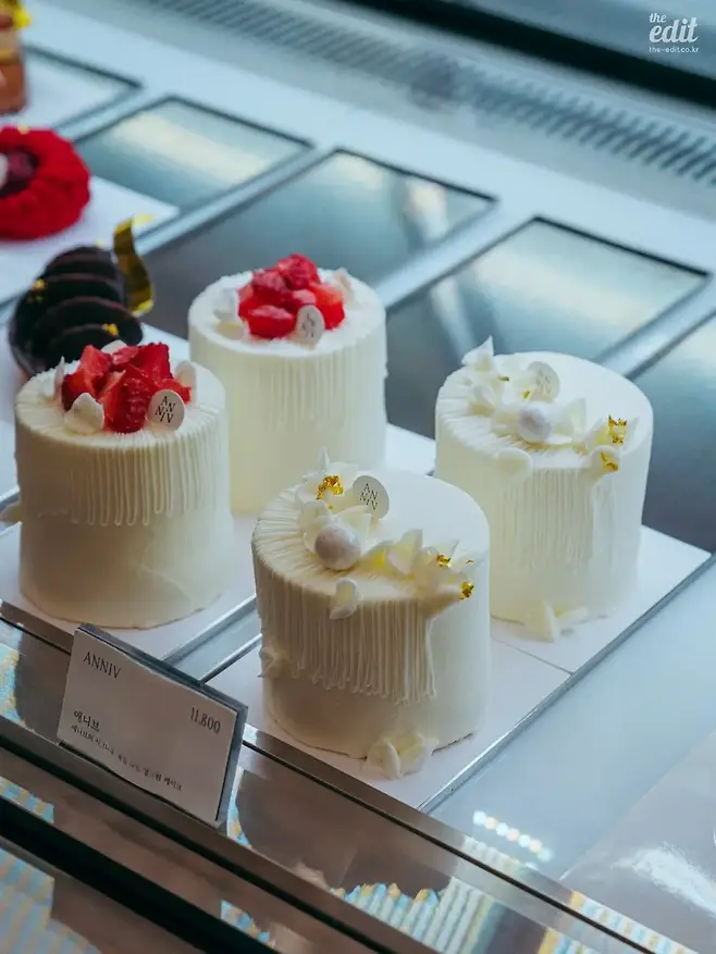 연희 본점과 롯데백화점 본점 두 지점이 있다. 연희 본점은 예약을 통해 홀 케이크를 구매할 수 있고, 롯데백화점 본점에서는 홀 케이크 ‘ANNIV’를 언제든 구매할 수 있다. 가게 이름을 딴 케이크인 만큼 시그니처라 할 수 있는데, 부드러운 우유 크림과 촉촉한 시트의 심플하면서도 직관적인 조화가 아름답다. 다양한 재료가 들어가야만 맛있는 게 아니라는 걸 여실히 느낄 수 있는 케이크. 홀 케이크를 그대로 축소해 둔 듯한 작은 크기도 있어서 간단히 기분 내기에도 안성맞춤이다.
