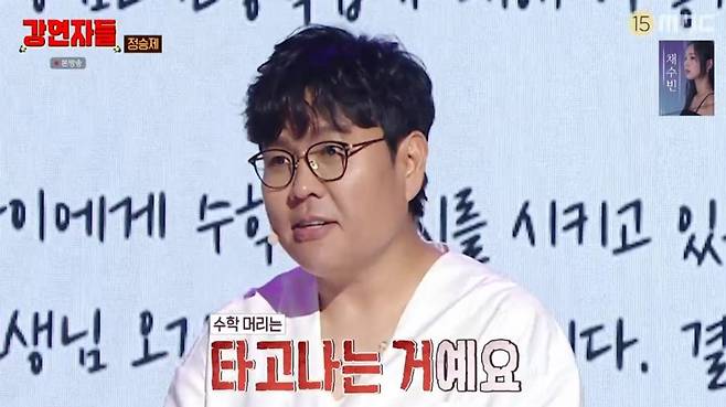 이날 정승제는 수학을 잘하는 소위 ‘수학머리’에 대해 “자신 있게 얘기할 수 있다. 수학머리는 타고나는 것”이라고 단언했다.