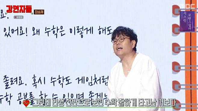1일 MBC '강연자들'에선 정승제가 '수학 유전자'를 주제로 강의를 펼쳤다.