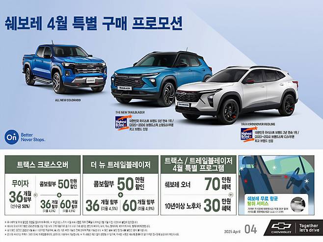 한편 쉐보레는 기존 고객을 위한 ‘2025 봄맞이 오너케어 서비스’를 4월 1일부터 6월 말까지 실시한다.