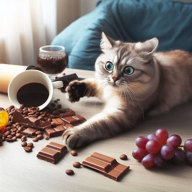 - 카페인: 커피, 차, 음료 등에 함유된 카페인은 고양이에게 중독 증상을 일으킬 수 있습니다