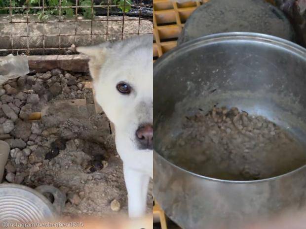 제보자 A씨에 따르면 녹슨 철창 안에 먹을 것이라고는 냄비 속 곰팡이가 핀 정체불명의 음식물뿐이었다. A씨는 "한 달 전쯤 우연히 보게 됐고, 아직까지 주인을 만난 적은 없다"고 말했다.
