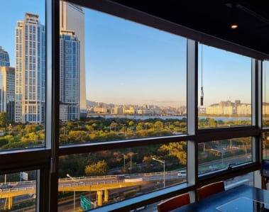 통창 너머로 한강뷰가 아름다운 북카페 마포 채그로입니다. 높은 층수에서 불꽃축제를 감상할 수 있어 이미 잘 알려진 서울 불꽃축제 명당이기도 한데요. 2024 서울불꽃축제 당일, 일반 이용객은 오후 3시 30분까지 정상적으로 북카페를 이용할 수 있습니다.