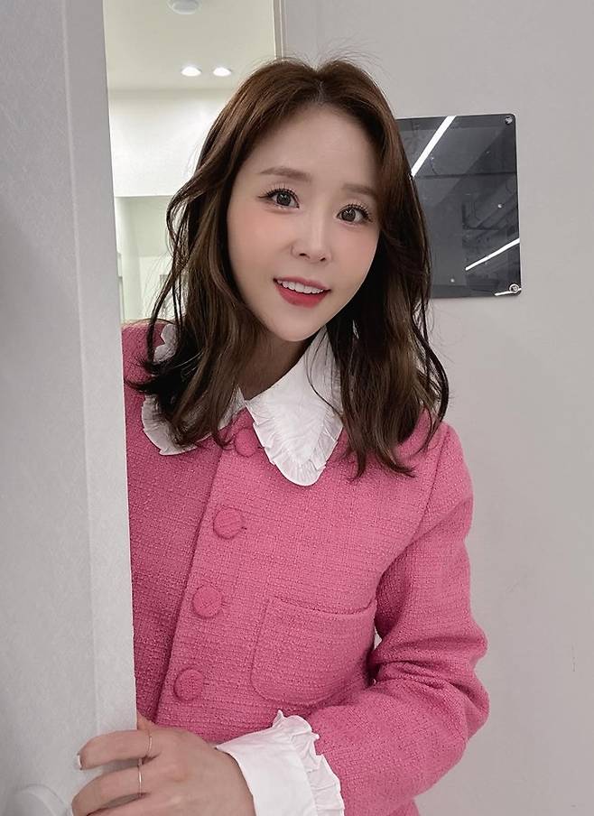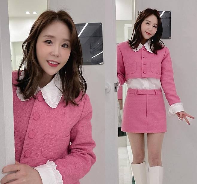 그룹 코요태의 신지가 핑크 투피스 슈트룩으로 단아하면서도 귀여운 공주 핏을 선보였다.