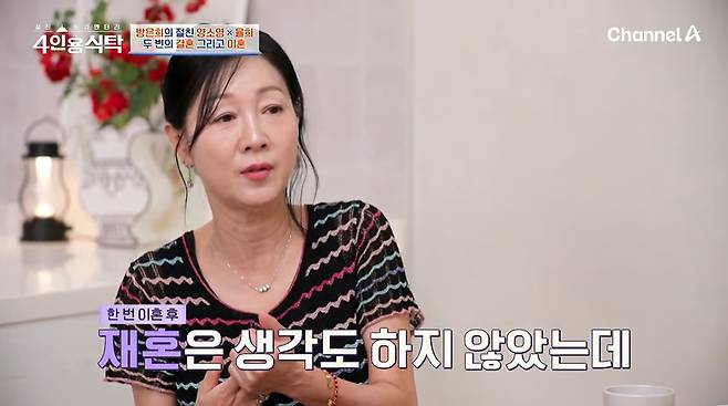 이어 방은희는 "나는 세상에서 제일 잘못한 게 결혼이다. 결혼 두 번 하면 뭐 하나. 사랑 없이 결혼했다"고 밝혔습니다. 이어 "처음에 만나자마자 33일 만에 결혼, 두 번째는 30일 만에 결혼했다"며 "연애 자체를 중요하게 생각 안 했다. 솔직히 덧없었다. 그리고 교만했다"고 말했습니다.
