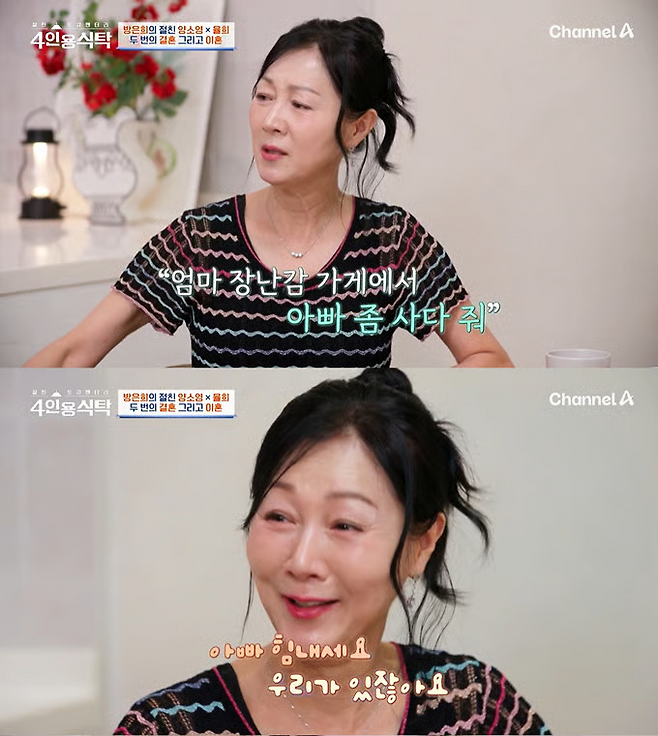 방은희는 "두 번째는 정말 안 하려고 했다. 남자친구는 사귀겠지만, 결혼은 안 하겠다고 했다. 그런데 아들이 3살 때 '엄마 장난감 가게에서 아빠 좀 사다 줘'라고 했다. 정말 (가슴이) 미어터졌다"고 털어놨습니다.