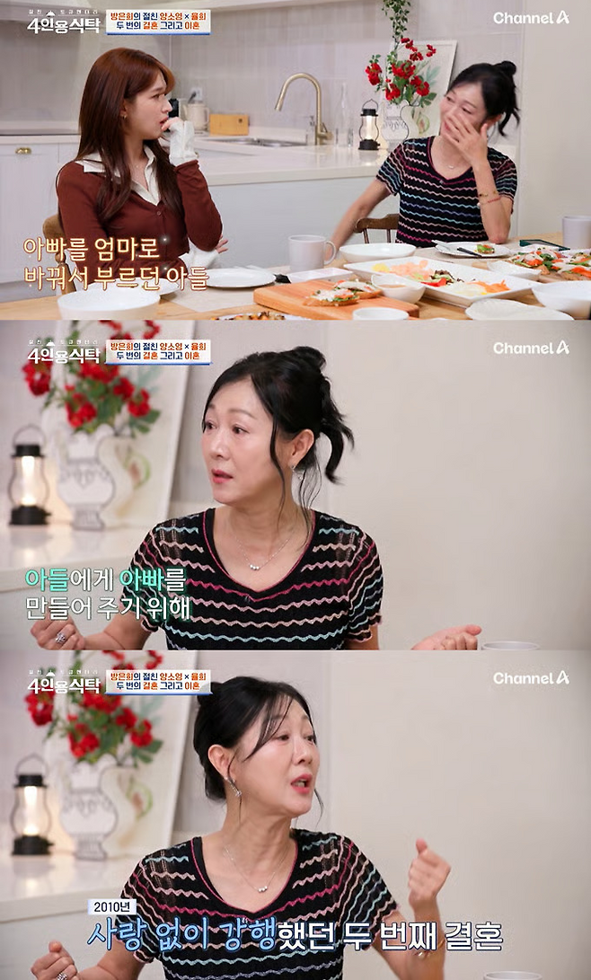 그는 "두 번째 전남편도 재혼이었는데, 아이가 없으니까 잘 모르더라. 같이 식사하는데 대화도 없고 먹지도 못했다"고 말했습니다. 이에 양소영 변호사는 "(내 아들이) 사랑받는다는 느낌이 없어서 슬퍼서 이혼한 것"이라며 안타까워했습니다.
