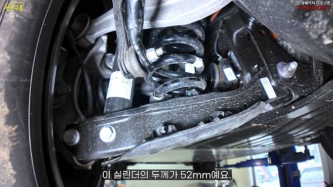 전륜 스트럿 쉘케이스의 두께는 굉장히 두꺼웠습니다. 실린더 두께가 52mm로, 국산 대형차인 팰리세이드가 약 46mm 미만인 점과 비교하면 상당한 차이가 나는 것이죠. 폭스바겐 ID.5 전륜 스트럿은 55mm로, 팰리세이드 전륜과 유사한 두께를 가지고 있어 견고함을 느낄 수 있었습니다.
