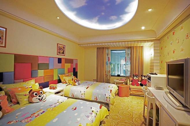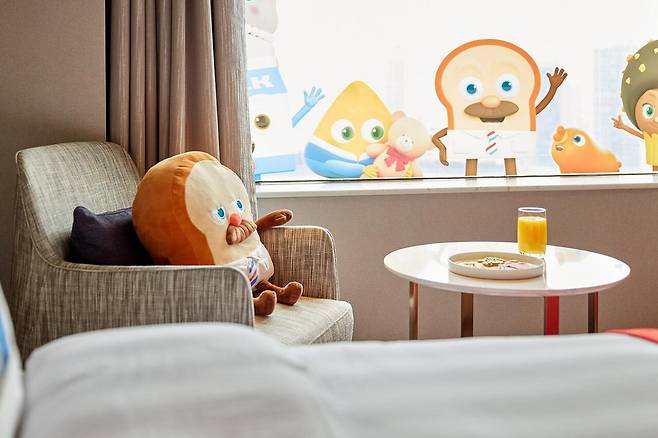 방 안에는 침대와 소파부터 욕실까지 캐릭터 아이템이 가득해 아이들이 꿈속에서 노는 듯한 기분을 느낄 수 있어요. 호텔 곳곳에 사진 찍기 좋은 포토존도 있어 가족과 함께 추억을 남기기에도 딱인 서울 호캉스랍니다.