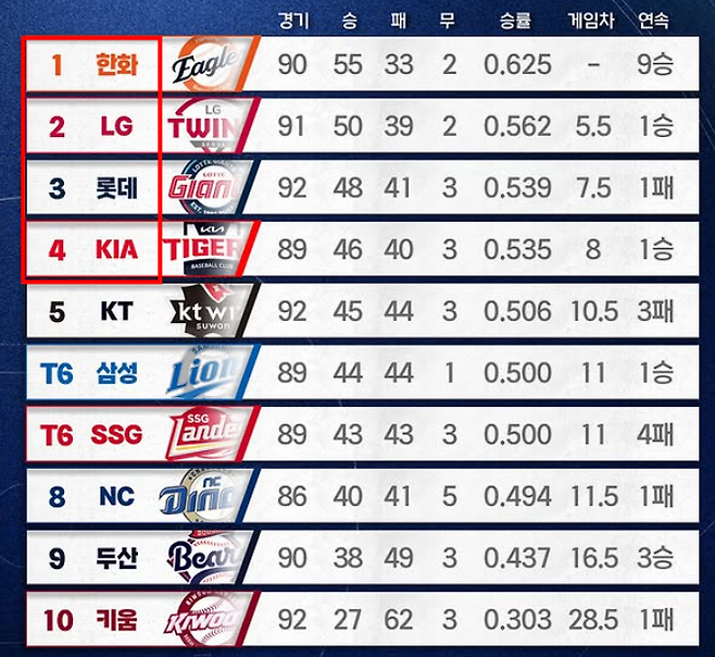 야구는 9회 말 2사부터 시작이라 했다. 이 치열한 4강 구도, 끝까지 놓칠 수 없는 것은 중하위권의 반란이다.