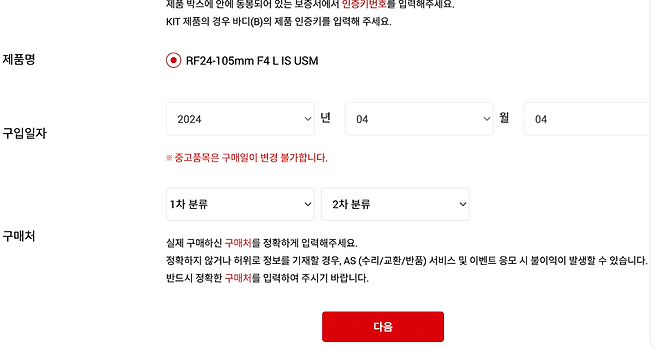 중고 렌즈 샀는데 이거 캐논 정품등록 돼있는 건가요 ?