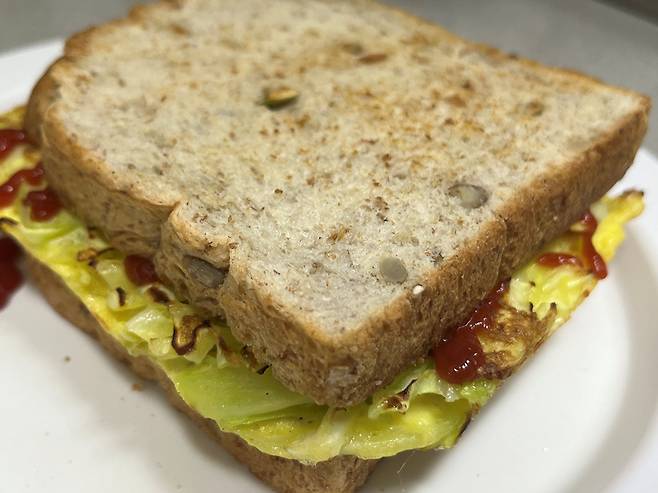 빵 한 조각을 덮어서 샌드위치를 만들어 보세요! 양배추가 들어갔지만 양배추 맛이 거의 나지 않고 오히려 단맛이 은은해서 정말 맛있습니다.