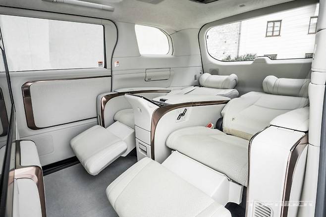신형 LM 시트는 탑승객의 신체 움직임을 분석해 머리 움직임을 줄이도록 설계됐는데, 2열 시트에는 정차 및 주행시 진동을 줄이는 충격 흡수 소재가 사용됐다. 4인승은 1열 시트와 2열 시트 사이 칸막이와 2열 48인치 디스플레이, 냉장고, 열선 팔걸이 등 6인승과 차별화됐다.
