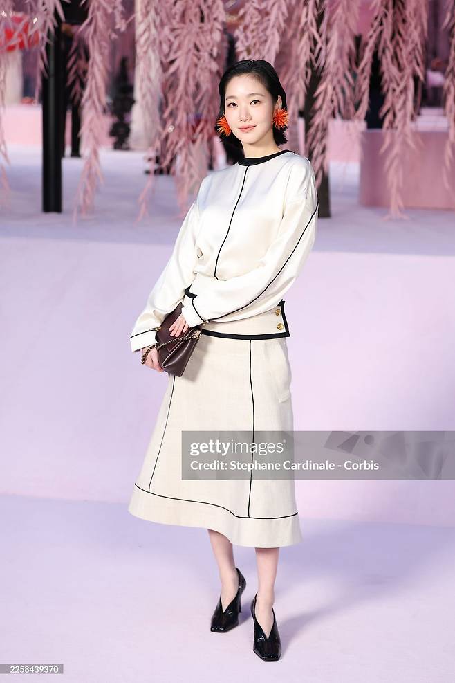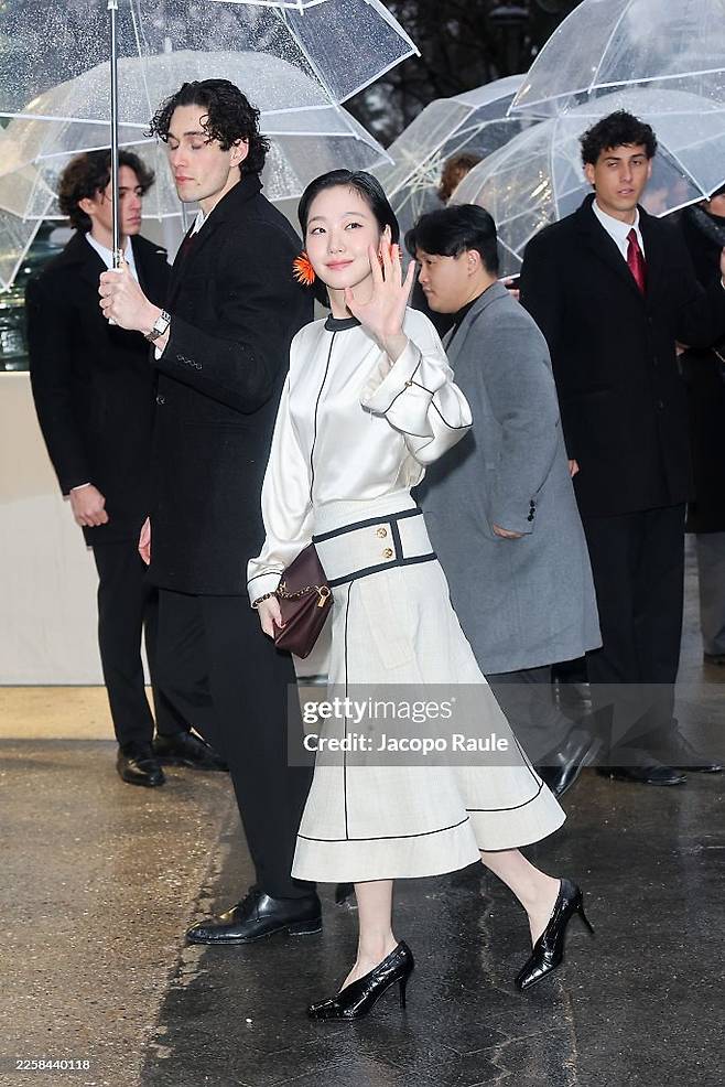 김고은은 아이보리 톤의 셋업에 블랙 파이핑이 정리된 룩을 선택했다. 실루엣은 단정했고 색감은 절제돼 있었다.