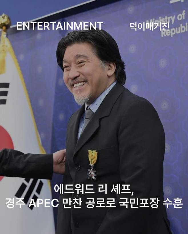 에드워드 리 셰프가 경주 APEC 정상회의 만찬을 성공적으로 이끈 공로를 인정받아 국민포장을 수훈했습니다.