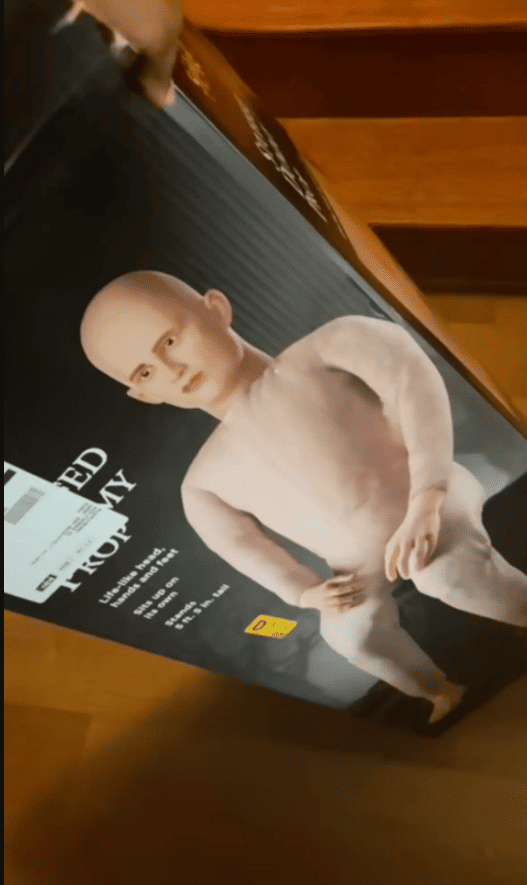 마네킹 상자를 열어본 순간, 키앤드라는 솔직히 섬뜩하다는 느낌을 받았습니다. 하지만 거스를 위해 태연한 척하며 마네킹을 진짜 오랜만에 만난 친구처럼 대했습니다. 그녀는 영상 속에서 "야 친구야 오랜만이네 몇 년 만이야"라며 인사했고, 놀랍게도 거스는 자연스럽게 마네킹의 무릎 위에 올라가 몸을 기댔습니다.