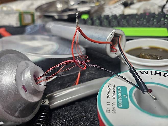 얇은 전선덕에 가능했지만 절연테이프도 너무 두껍게 느껴져서 열로 피복감는 그거?로 대체했습니다