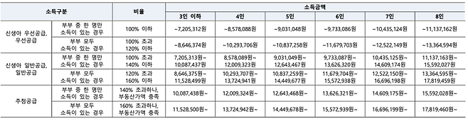 부동산 자산(3억3100만원 이하) 또는 아래 소득기준 충족