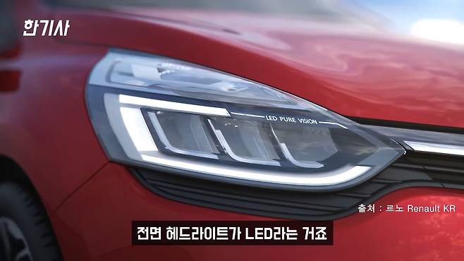 르노 클레오의 장점은 우선 디자인이에요. 르노 싫어하는 사람들도 앞에 'ㄷ'자 데라이트를 보면서 쭉 뒤까지 이어진 그 디자인은 절대로 욕을 못하겠다고 공감을 하는 분들이 많더라고요. 그리고 그릴에 보시면 빨간색 포인트가 처음에 튜닝한 줄 알았어요. 근데 순정이고요. 한 번은 뒤에서 후미를 약간 접촉하는 사고가 있었는데, 그때 사고를 내신 분이 정비사분이셨더라고요. 그래서 하시는 말씀이 이 차가 너무 예뻐서 구경하느라 앞을 못 봤다고 말씀을 해주셨는데, 믿거나 말거나입니다.