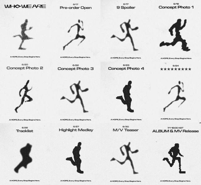아홉(AHOF·스티븐, 서정우, 차웅기, 장슈아이보, 박한, 제이엘, 박주원, 즈언, 다이스케)은 17일 0시 공식 SNS 채널에 첫 번째 미니앨범 'WHO WE ARE(후 위 아)' 스케줄러 모션을 공개했다.