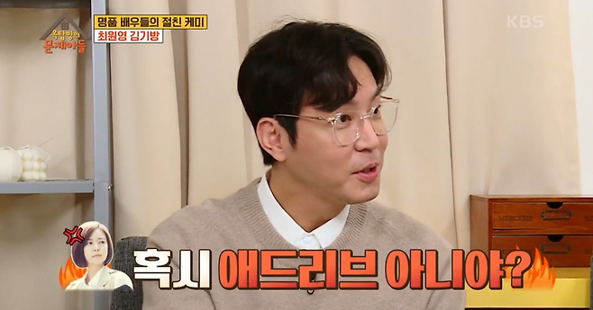 그렇다면 최원영은 아내인 심이영이 펼치는 애정신을 어떻게 봤을까 싶은데요. 심이영의 키스신을 보고 "프로끼리 왜 이래?"라고 의연하게 반응했다는 최원영. 하지만 꼴 보기 싫어서 방으로 도망갔다고 밝혀 웃음을 자아내기도 했습니다.