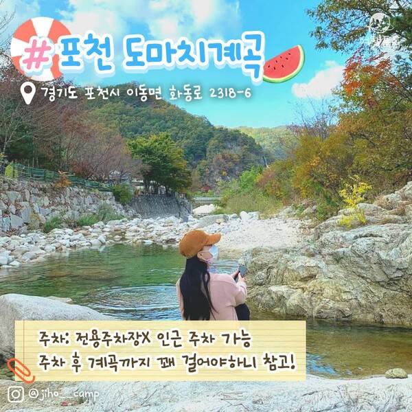 원래 도마치계곡은 백패킹으로 유명한 곳인데요. 도마치계곡 이용 시 도마치 캠핑장으로 검색 후 방문하시면 됩니다. 캠핑장은 사유지역이라 이용하지 않을 시 주차가 불가능합니다. 인근에 분리되어 있는 갓길을 이용해 주차해 주세요.