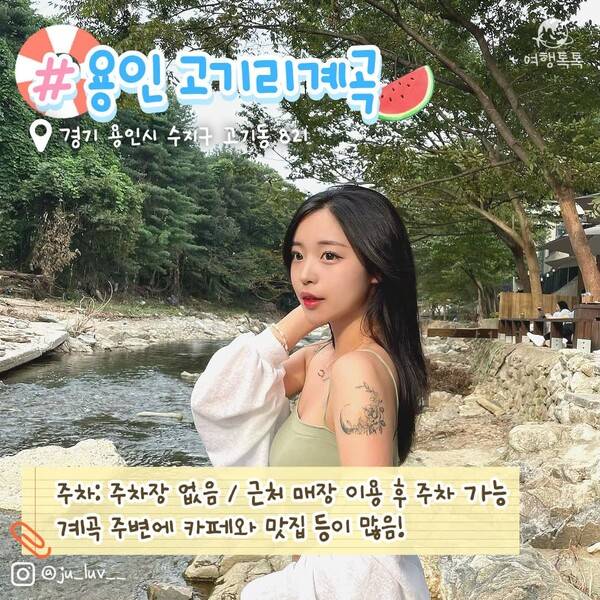 용인 고기리계곡은 수지 광교 등에서 15분 정도면 방문 가능하고 강남역에서도 자차를 이용해 30분 정도면 방문할 수 있는 서울근교 계곡으로 당일치기 계곡으로 추천하는데요. 주변에 맛집과 카페도 상당히 많아 여름이 아닐 때에도 사람들이 꽤나 몰리는 명소입니다.