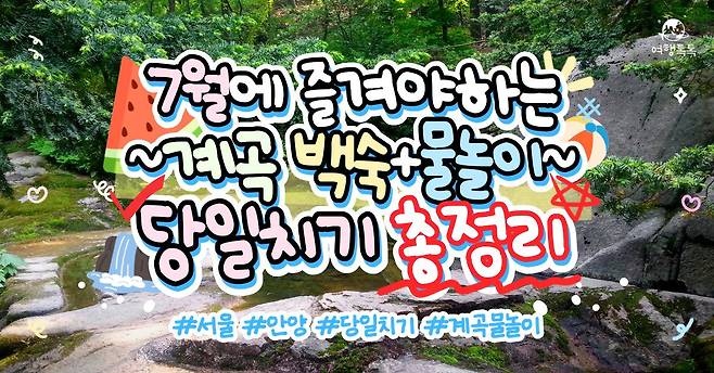 오늘은 그중에서도 서울 근교에서 당일치기로 갈 수 있는 수도권 인근 계곡을 추천합니다. 시원한 자연을 온몸으로 만끽할 수 있는 계곡물놀이를 하러 여행톡톡과 함께 떠나볼까요?