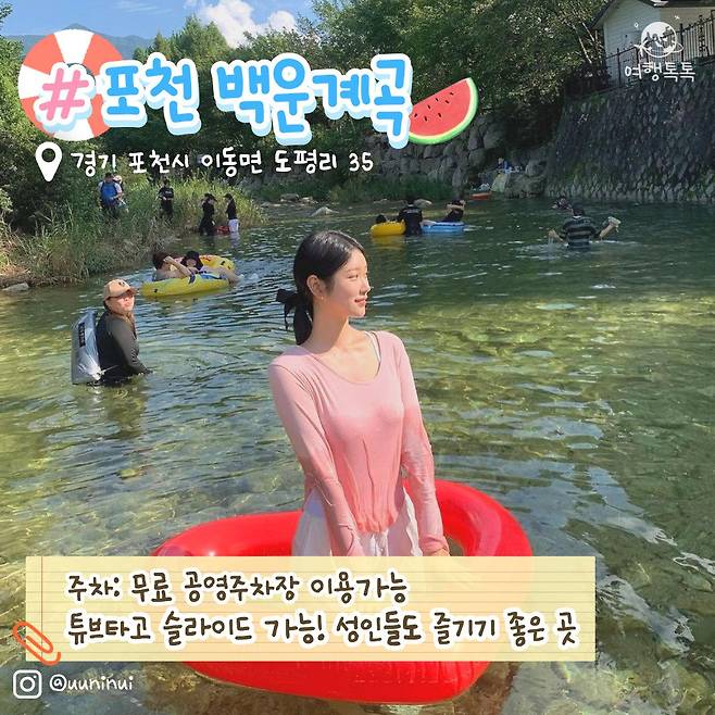 특히나 자연이 만든 워터슬라이드를 즐길 수 있는대요. 튜브를 타고 물살을 즐길 수 있어 친구들과 함께 방문하는 것을 추천합니다.