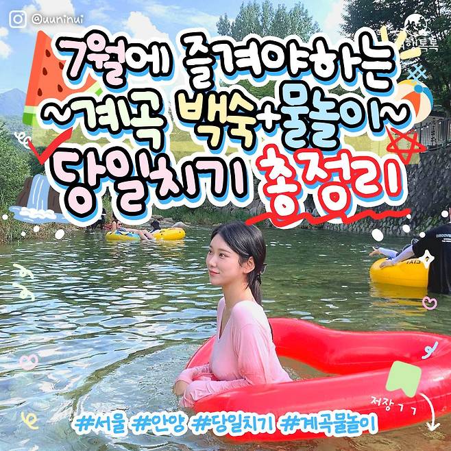 드디어 제대로 된 여름이 시작되었습니다! 여름 하면 물놀이가 빠질 수 없겠죠? 물놀이를 즐기기 위해 워터파크, 바다, 계곡 등 다양한 선택지가 있을 것 같은데요.