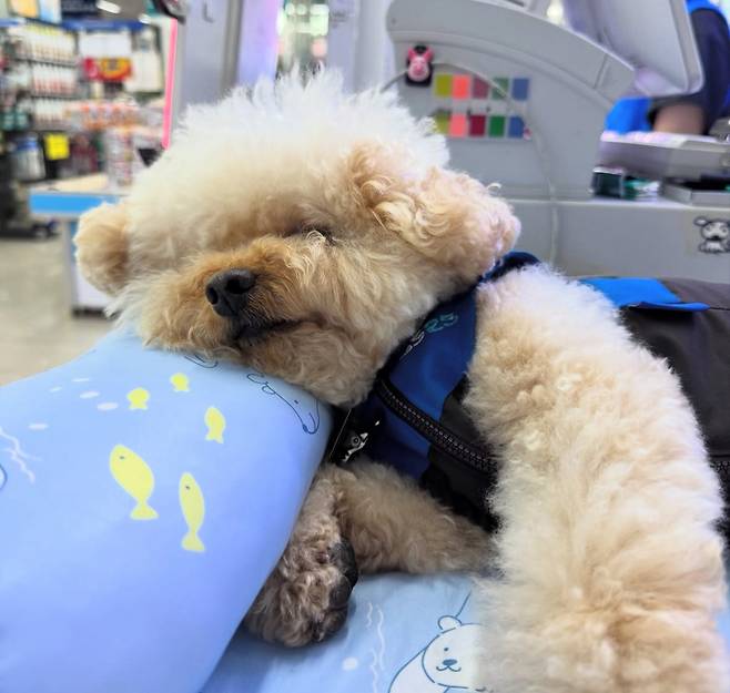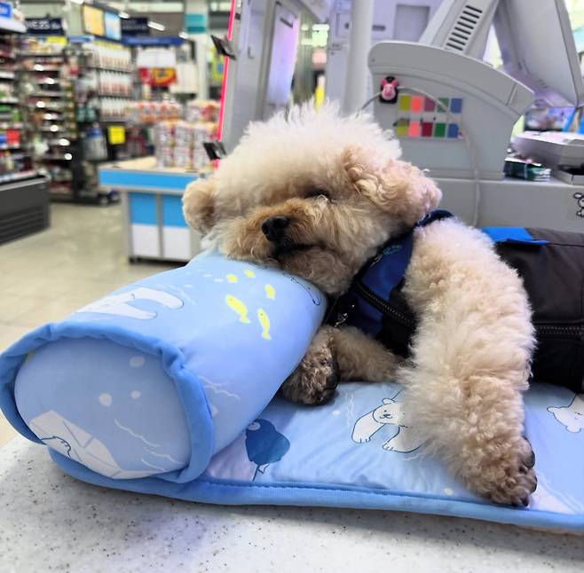 야무지게 편의점 유니폼도 입고 베개도 베고있는 모습이 너무 귀엽네요 ㅋㅋㅋ
