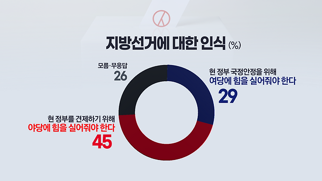 포항 시민들은 이번 지방선거의 의미에 대해 '현 정부 국정 안정을 위해 여당에 힘을 실어줘야 한다'에 29%, '현 정부 견제를 위해 야당에 힘을 실어줘야 한다' 45%로 답했습니다.
