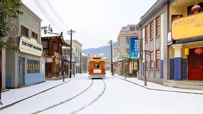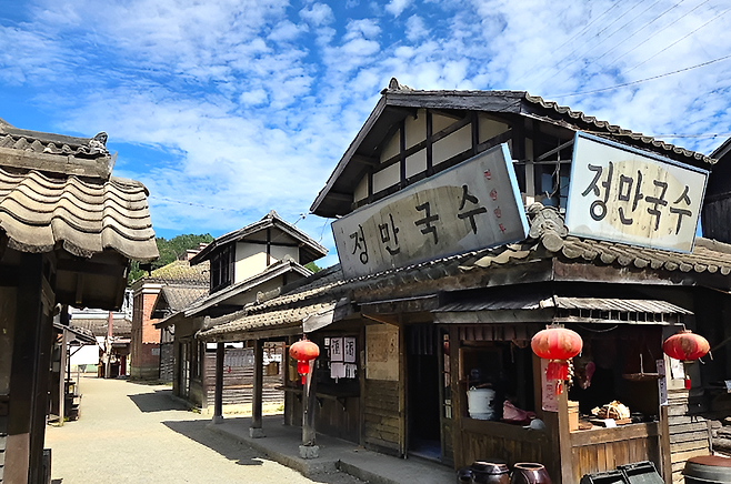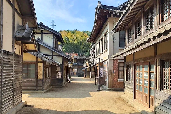 합천 영상테마파크의 중심에는 시대물 거리가 있다. 일제강점기 골목에서 출발해 개화기 양옥, 1970~80년대 거리까지 하나의 동선으로 자연스럽게 이어진다. 낡은 간판과 오래된 담벼락, 고풍스러운 한옥이 한 공간에 공존한다.