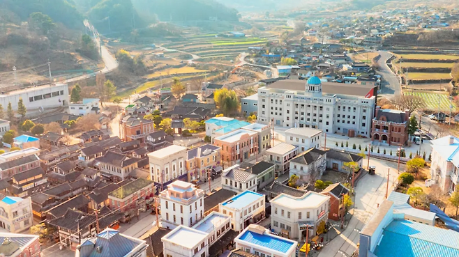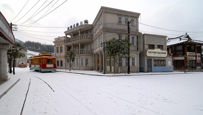 하지만 모노레일이 움직이기 시작하는 순간, 분위기는 달라진다. 숲 위로 천천히 올라가는 레일 끝에서, 누구나 한 번쯤 화면 속에서 봤을 익숙한 건물이 모습을 드러낸다. 실제가 아닌 세트장임에도 단번에 알아보게 되는 풍경이다. 합천 영상테마파크는 이렇게 일상에서 갑자기 드라마 속 장면으로 들어가게 만드는 공간이다.