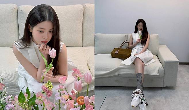 무엇보다 이번 룩에서 빛난 것은 장원영의 표정이다. 파스텔 톤의 튤립과 함께 카메라를 바라보는 장원영은 마치 꽃들 사이에서 피어난 또 하나의 꽃처럼 보인다. 은은한 미소와 촉촉한 아이 메이크업, 그리고 정돈된 긴 생머리는 전체적인 스타일을 완성시키는 마무리 터치다.