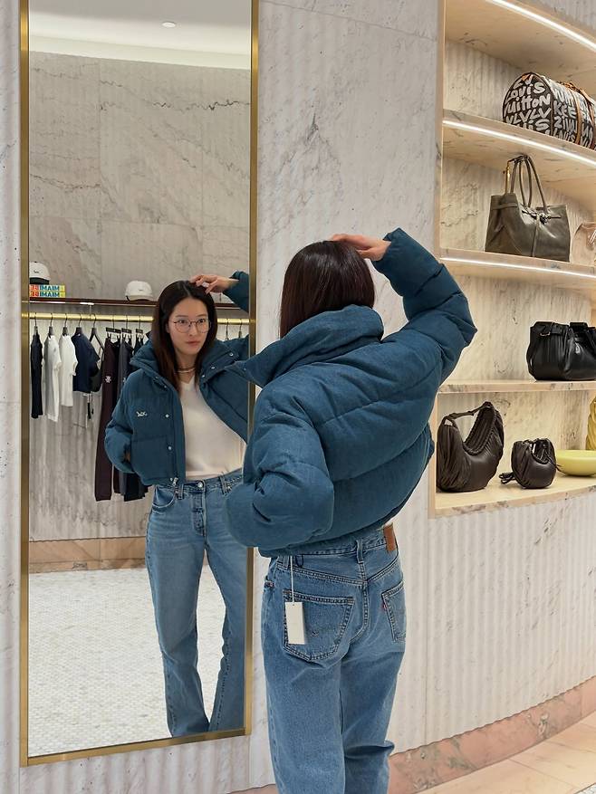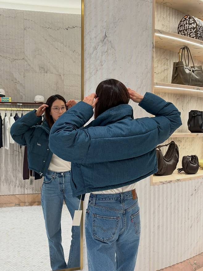 차분한 헤어 컬러와 지적인 안경, 그리고 캐주얼한 패딩의 조화는 꾸민 듯 안 꾸민 듯한 고감도의 일상 스타일을 보여주는 훌륭한 예시라고 할 수 있습니다.