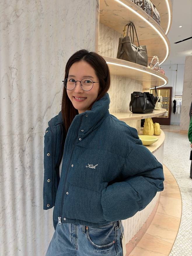 사진 속 왕빛나 씨는 포근한 청색 패딩 점퍼에 지적인 분위기의 안경을 매치한 채 환한 미소를 짓고 있는데요.
