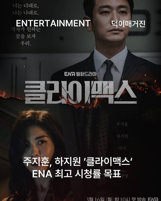 한편 ‘클라이맥스’는 총 10부작으로 제작됐으며 오는 16일 오후 10시 ENA에서 첫 방송됩니다. 방송 이후 지니TV와 디즈니+를 통해서도 시청할 수 있습니다.