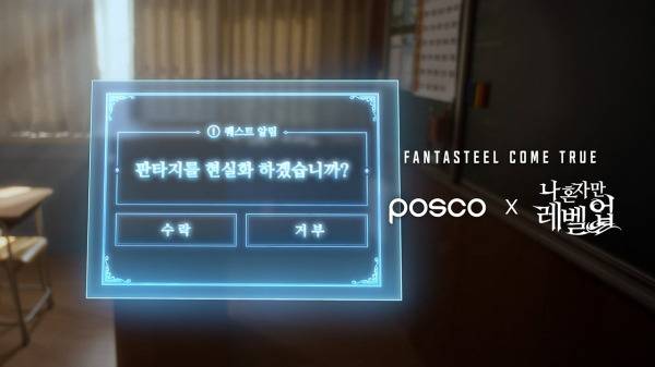 포스코는 1월 15일 나혼렙과 함께 ‘판타지가 현실이 된다(FANTASTEEL COME TRUE)’를 주제로 제작한 판타스틸 광고 티저 영상을 공개했다.