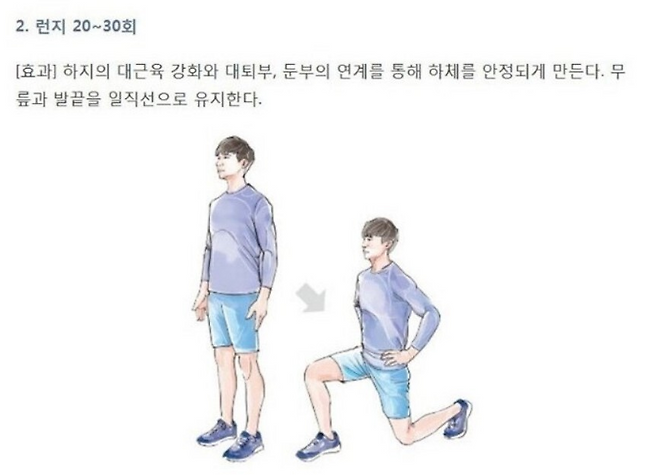 ✔ 런지 (Lunges) – 10회씩 양쪽