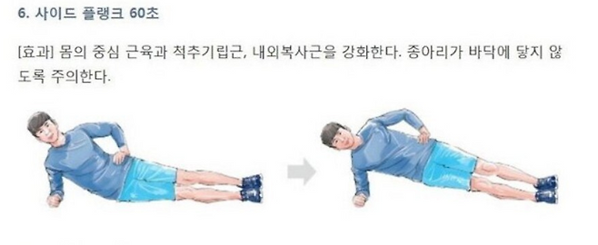 ✔ 사이드 플랭크 (Side Plank) – 15초씩