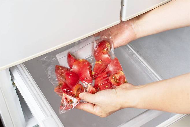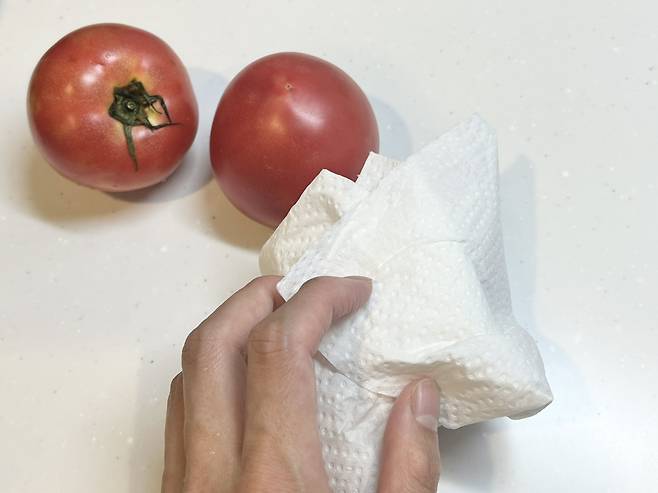 완숙 토마토는 키친타월로 감싸 밀폐 용기에 넣고 냉장 보관