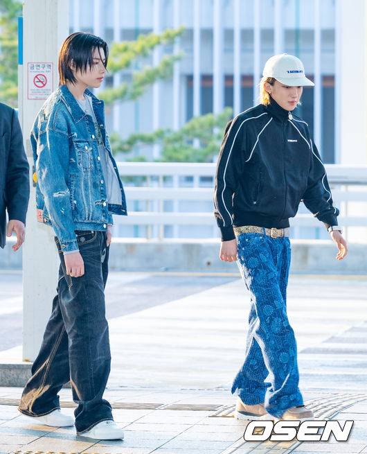 롱샷 루이와 우진이 출국장으로 향하며 포즈를 취하고 있다. 2026.03.20/ rumi@osen.co.kr