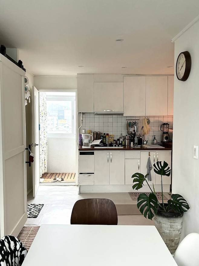 사실 처음부터 화이트톤으로 집을 디자인한 건 아니었어요. 그런데 공간의 제약 때문에 원하는 톤으로 집을 인테리어 하는 게 무리가 있겠더라고요. 짙은 우드톤을 원했거든요.