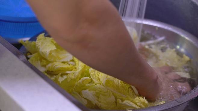 절여진 배추는 물에 2~3번 씻고