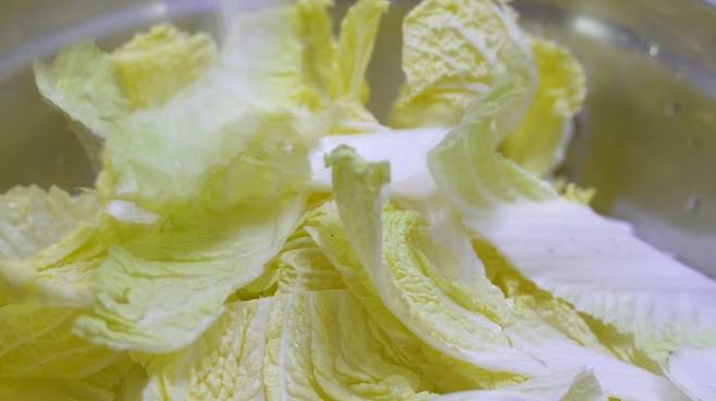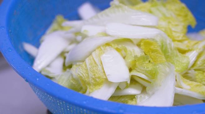 물에 한번 배추를 씻고