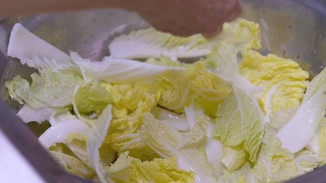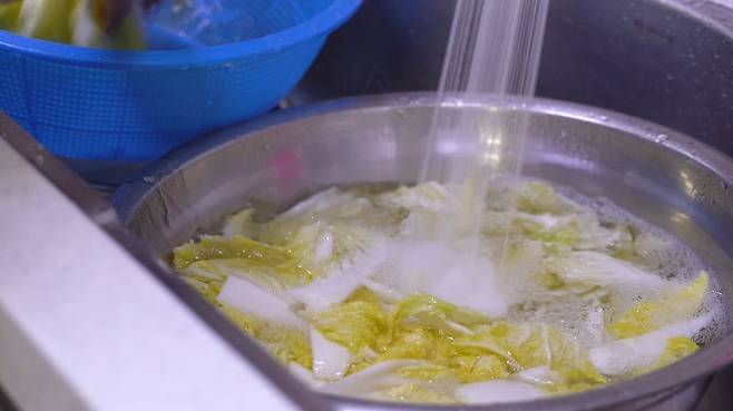 물에 한번 배추를 씻고